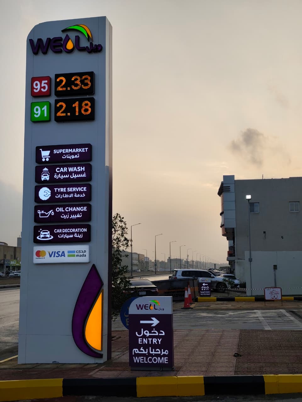 WELL Najd Station offers two types of fuel: Gasoline 91 and Gasoline 95.